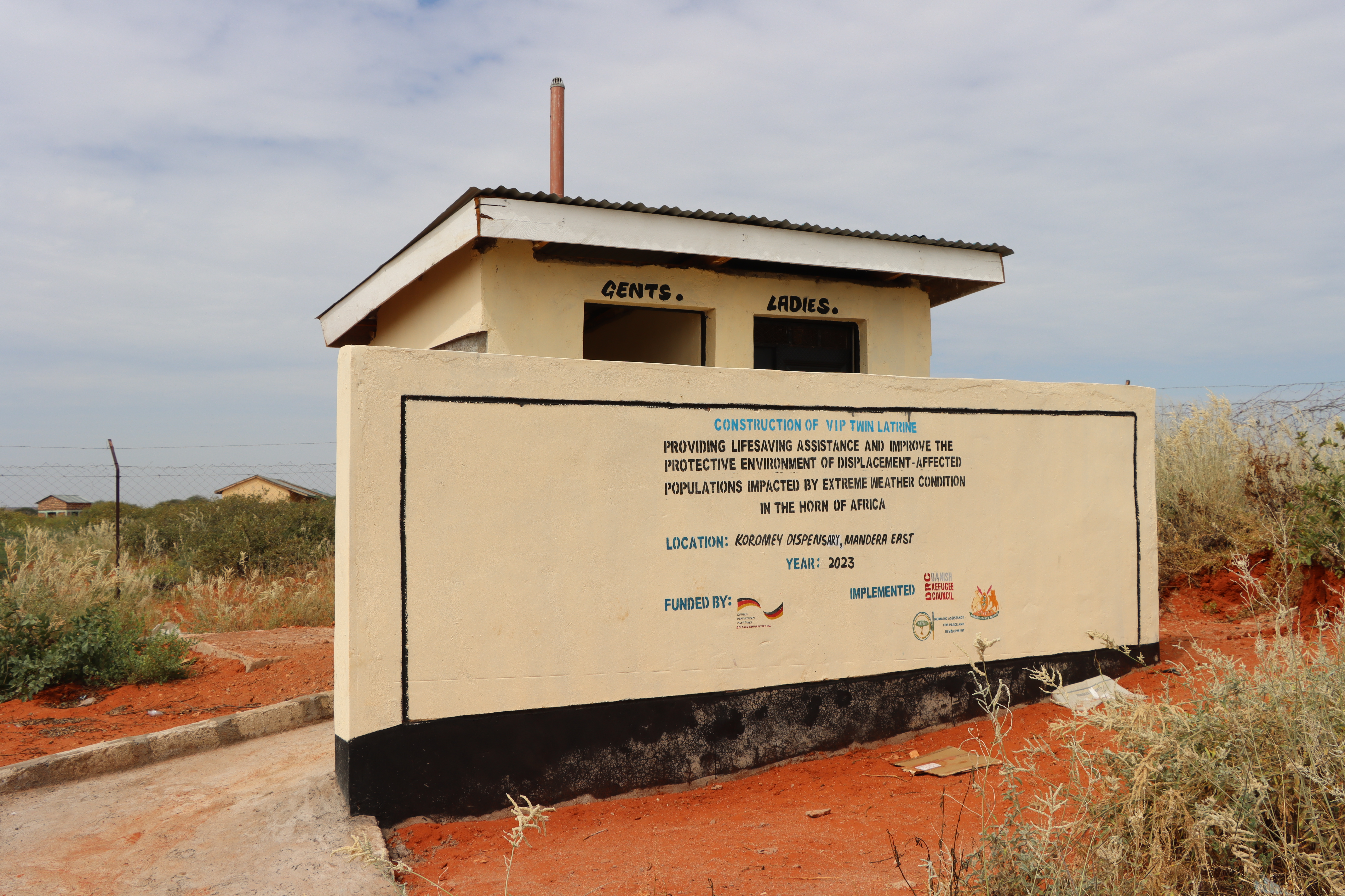 Koromey Dispensary, in Mandera was among the public facilities supported with the installation of an elavated 5,000-liter water tank and a 0.5HP booster pump, construction of soak-away pits for wastewater disposal and a twin Ventilatted Improved Pit (VIP) latrine.