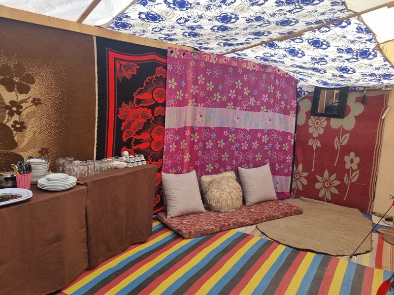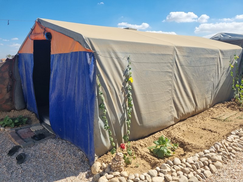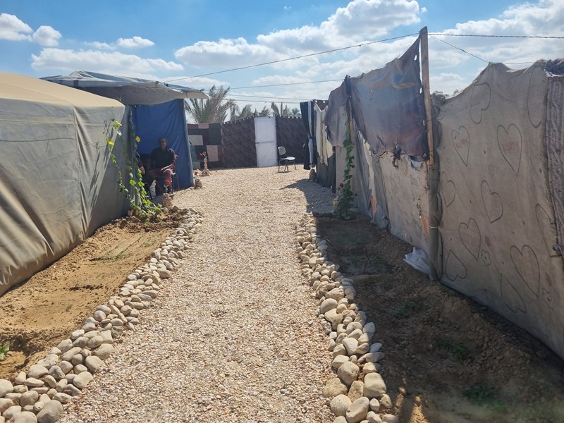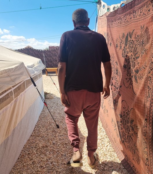 He moved to Mawasi Khan Younis for several months. As a carpenter, he used his skills to build a simple but beautiful tent for his family. “I tried to make it feel like home. I used what I found... wood, cloth, and hope.”