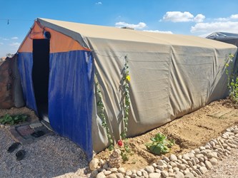 Abu Mohammad and his brother now live like one family, sharing food, tools, and hope. Their two tents stand side by side.. a small circle of life in a sea of displacement.
