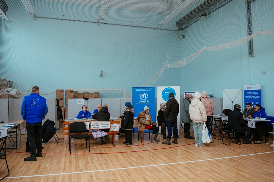 Inside the sports hall, directly on the basketball court, representatives of more than 40 organisations are ready to help. They provide legal, psychological, and protection assistance. Visitors can receive hygiene kits, basic necessities and food. Doctors and a medical team also provide free medication.